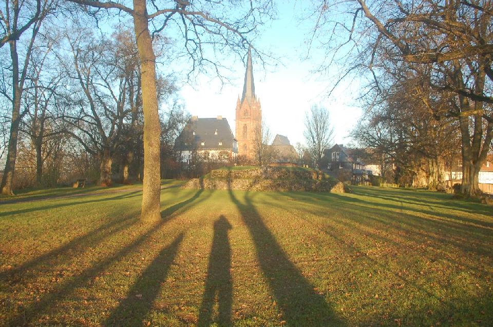 Auf dem Burgberg wurde im Mittelalter eine Festung zur Sicherung der Weinstraße von Frankfurt nach Frankenberg errichetet. Im Jahre 1376 brandte die Burg nieder und wurde nicht wieder aufgebaut. Vom Burgberg aus hat man einen schönen Blick über die Stadt Frankenberg. Zu sehen sind noch die Überreste einer Freilichtbühne aus der Frankenzeit sowie die Überreste der Stadtmauer. | |