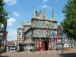 Spielzeiten des Glockenspiels: täglich: 11:45 und 15:45 Uhr Das Rathaus von Frankenberg (Eder) befindet sich zwischen dem Obermarkt und dem Untermarkt im historischen Zentrum der Stadt. Ein erstes Rathaus Frankenbergs wurde 1421 abgebrochen, sein Nachfolgebau fiel bereits im Mai 1476 einem Stadtbrand zum Opfer. Der heute erhaltene, dritte Rathausbau wurde von 1509 bis 1513 errichtet. Er besteht aus zwei vollwertigen Stockwerken und einem dritten, in das Dach übergehenden Geschoss. Im Erdgeschoss befindet sich eine Markthalle (Schirn), im zweiten Geschoss sind die heutigen Verwaltungsräume mit dem Ratssaal und einem Trauzimmer. Eine Verbindung zwischen den Stockwerken ist mit dem im Westen befindlichen oktogonalen Treppenturm gegeben. Insgesamt verfügt das Rathaus über zehn Türme, die auf die zehn Zünfte hinweisen, die in Frankenberg ansässig waren. Zum 500-jährigen Bestehen des Rathauses gab die Bundesrepublik Deutschland am 2. Januar 2009 eine 45-Cent-Sonderbriefmarke heraus. | |